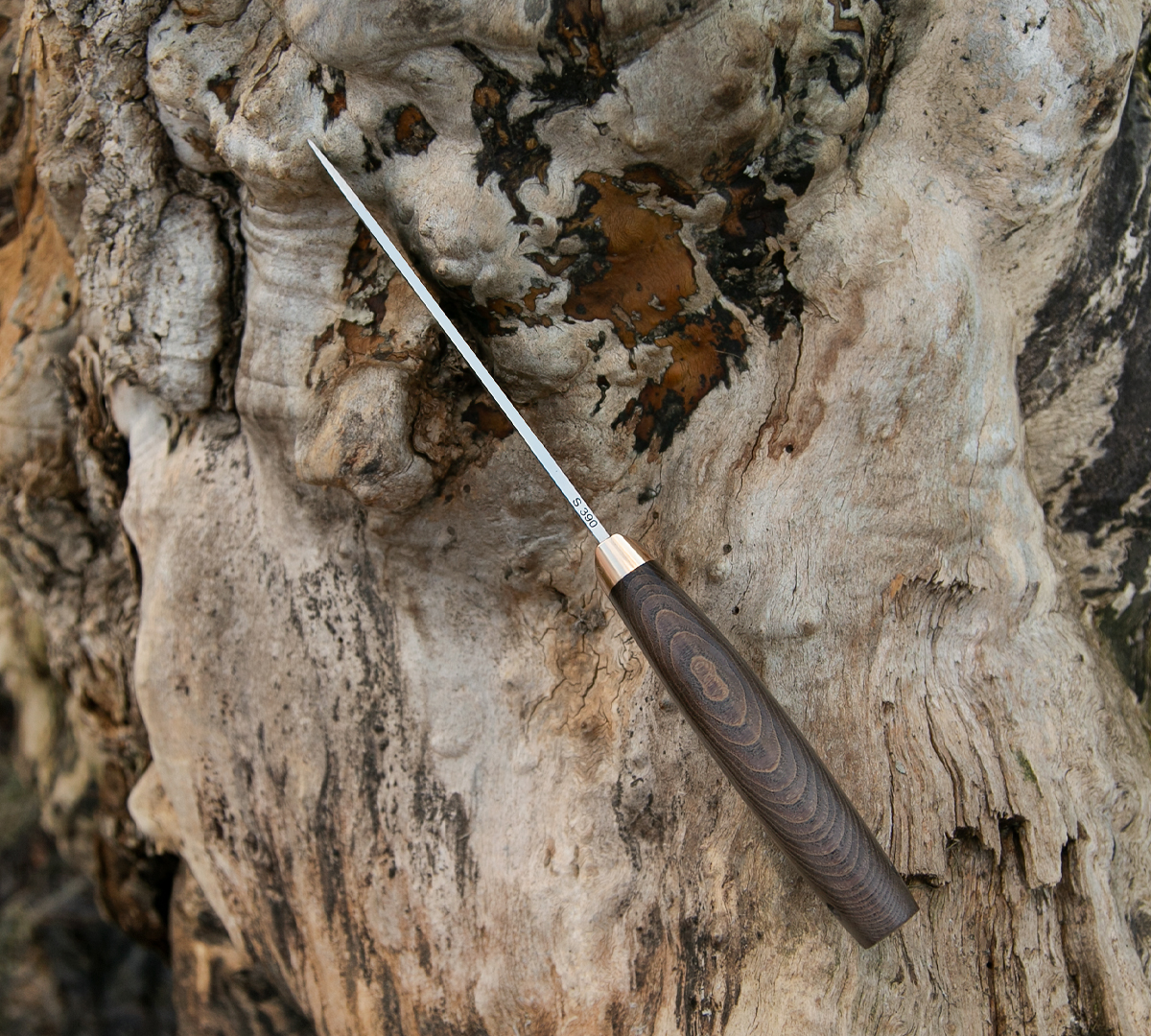 Нож Клыч из порошковой стали S390, рукоять - стабилизированный дальневосточный ясень, кожаный чехол в комплекте.